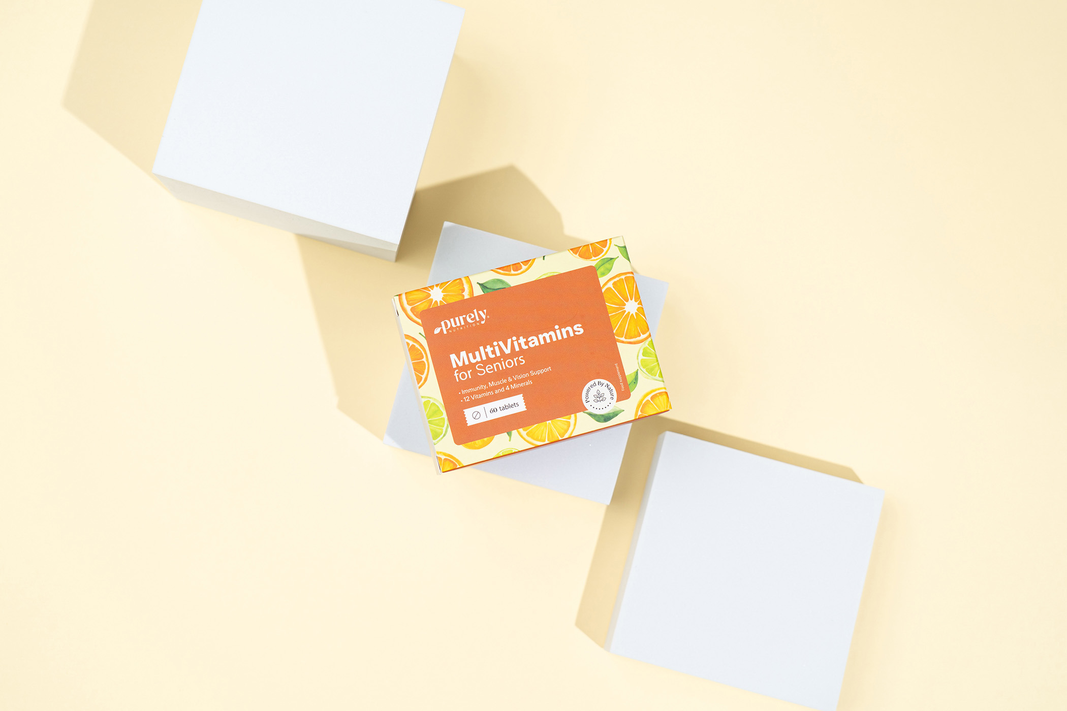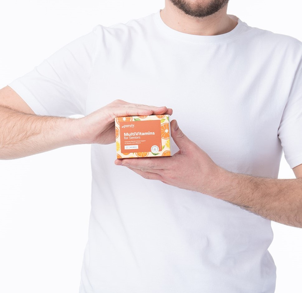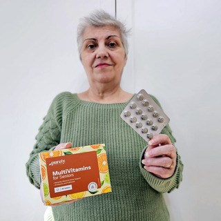 Składniki: wypełniacz: sorbitole, bisglicynian żelaza, bisglicynian cynku, kwas L-askorbinowy, substancja przeciwzbrylająca: sole magnezowe kwasów tłuszczowych, nikotynamid, octan D-alfa-tokoferolu, octan retinylu, cholekalcyferol, pantotenian wapnia, chlorowodorek pirydoksyny, ryboflawina, chlorowodorek tiaminy, kwas pteroilomonoglutaminowy, D-biotyna, cyjanokobalamina, wyciąg z kwiatów aksamitki (Tagetes erecta), L-selenometionina, jodek potasu.