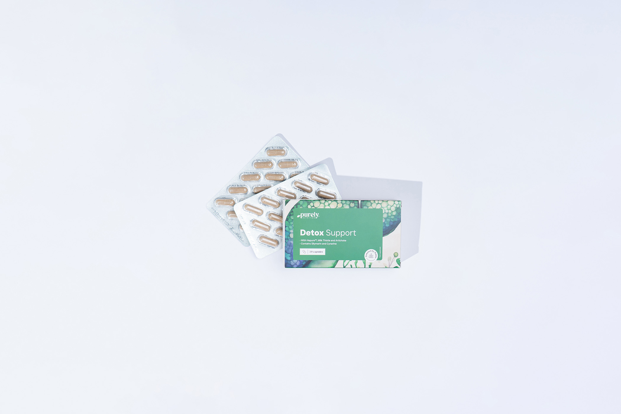 Składniki: Hepure™ - mieszanka wyciągów goździkowca i kocanki włoskiej, ostropest plamisty (80% sylimaryny), wyciąg z karczocha (2,5% cynaryny), kwas askorbinowy (witamina C), niacyna (witamina B3), celuloza mikrokrystaliczna (substancja wypełniająca), otoczka kapsułki roślinnej (HPMC; hydroksypropylometyloceluloza), stearynian magnezu (substancja przeciwzbrylająca).